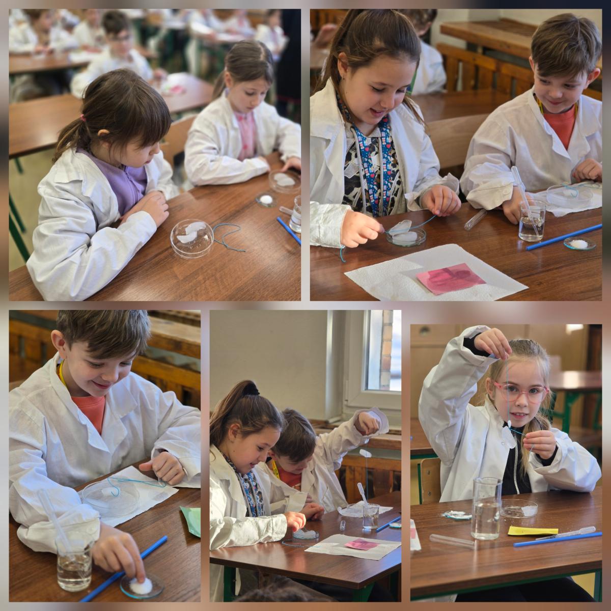 Dzięki samodzielnemu wykonywaniu doświadczeń uczniowie w przystępny i atrakcyjny sposób poznawali właściwości wody oraz zmiany jej stanu skupienia. Zajęcia sprzyjały rozwijaniu ciekawości poznawczej, obserwacji oraz wnioskowania, a nauka przez działanie sprawiła dzieciom wiele radości.